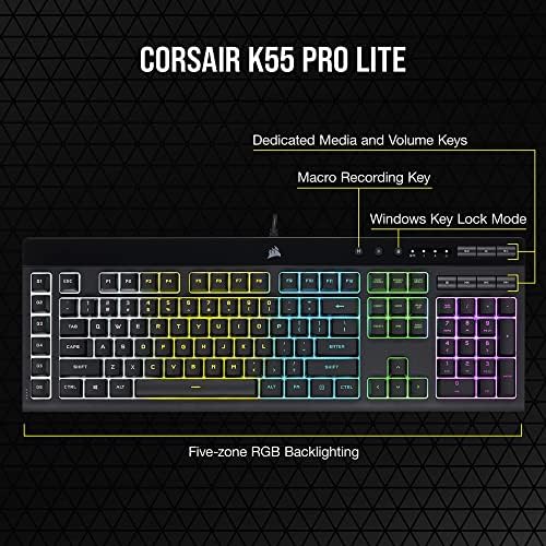 Introducing the Corsair K55 PRO LITE RGB Wired Membrane Gaming Keyboard, the ultimate companion for every passionate gamer. Elevate your gaming experience with its impressive features and exceptional performance that will take your skills to the next level.